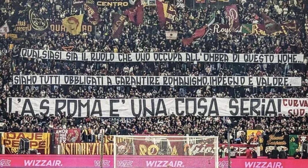 (Adnkronos) – “Qualsiasi sia il ruolo che uno occupa all’ombra di questo nome, siamo tutti obbligati a garantire romanismo, impegno e valore. La Roma è una cosa seria”. La Curva Sud ha risposto così, prima di Roma-Atalanta di oggi, sabato 18 aprile, alle vicende dell’ultima settimana in casa giallorossa. Il tifo organizzato del club capitolino ha preso posizione dopo il botta e risposta – con relative polemiche – tra il senior advisor del club Claudio Ranieri e il tecnico Gian Piero Gasperini. All’annuncio delle formazioni, l’Olimpico ha detto la sua. Come? Con uno striscione chiaro esposto prima della sfida, accompagnato da tanti applausi per l’allenatore.