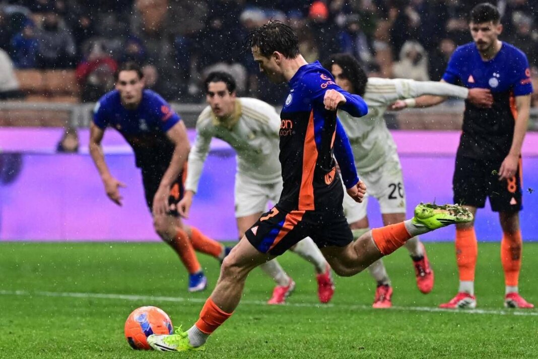 L’episodio che cambia l’inerzia del match arriva al 37′ del primo tempo. Dimarco calcia da fuori e trova la bella parata di Scuffet, poi la difesa del Pisa spazza ma il pallone finisce nei piedi di Carlos Augusto, che si coordina e tira di destro, trovando però la scomposta opposizione di Tramoni. L’attaccante toscano colpisce il pallone con il braccio, aperto e in posizione innaturale, dopo che la sfera era carambolata anche sul petto del giocatore. L’arbitro Marcenaro non ha dubbi e indica il dischetto, decisione poi confermata dopo il check del Var, tra le proteste dei calciatori e della panchina del Pisa, con Gilardino anche ammonito nel caos.
