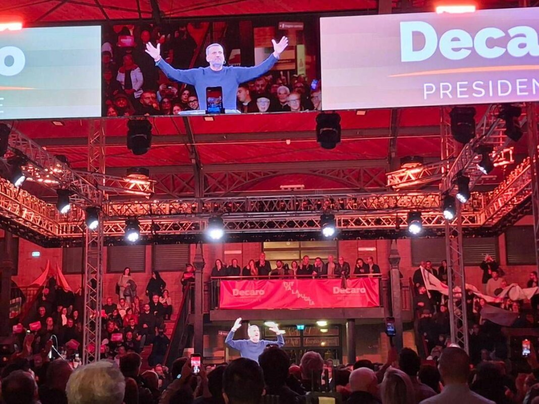 “Ho preparato una bella lista”, ha aggiunto. “Sono quattro. La prima è che non vi prometterò nulla che non sia realizzabile. I numeri sono una cosa seria”, ha proseguito Decaro. “Io sono un ingegnere, mi hanno sempre insegnato ad avere rispetto dei numeri. Quindi la prima cosa che vi prometto è serietà e realismo. È meno affascinante, lo so, ma più onesto. Sono stato sempre tra la gente, e quando guardi negli occhi una madre che ha paura che il proprio figlio si allontani dalla propria terra, o un operaio che teme di perdere il lavoro, non ce l’hai il coraggio di illuderli. Non ce la fai a tradire le loro speranze con gli annunci da televendita”, ha detto ancora.