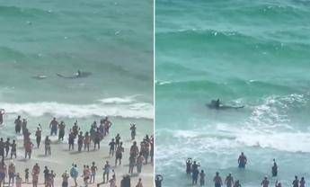 (Adnkronos) – Duello tra lo squalo e la razza in riva al mare, con i bagnanti spettatori dello scontro. I video diffusi sui social mostrano il confronto ravvicinato tra uno squalo e una razza davanti alla spiaggia di Panama City, in Florida. Decine di persone si avvicinano, alcune entrano anche in acqua per assistere da vicino allo scontro: "Oddio, lo sta mangiando?'', la domanda che una persona si pone davanti allo 'spettacolo'.   Non è chiaro che tipo di squalo sia coinvolto nel duello. Nelle acque della Florida in particolare, evidenzia la National Oceanic and Atmospheric Administration, non sono insoliti confronti ravvicinati tra squali e razze. —internazionale/esteriwebinfo@adnkronos.com (Web Info)